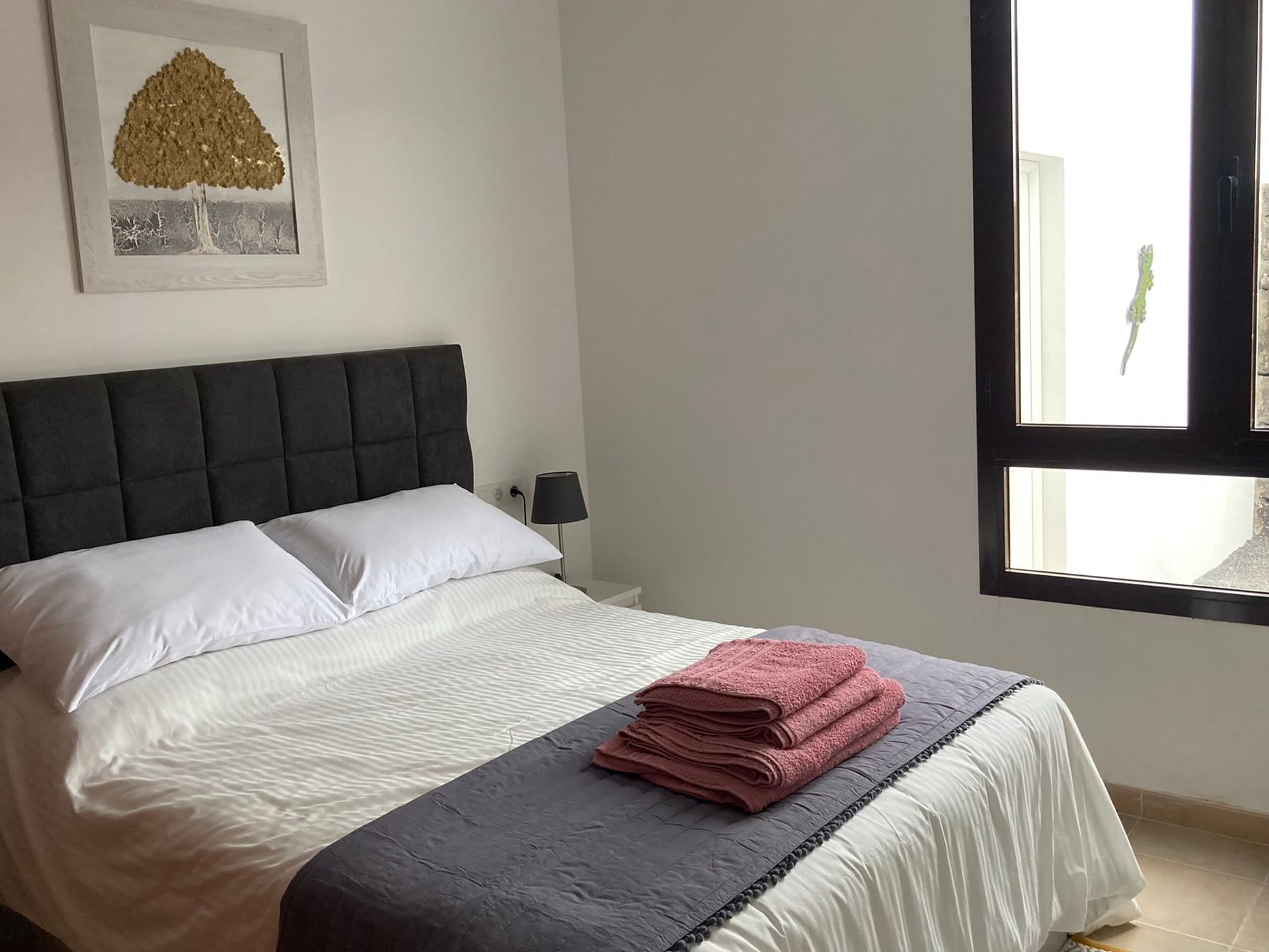 Upstairs there is a bathroom with shower over the bath, 1 double bedroom with direct access to large terrace that over looks the garden, pool and volcano in the national park. The second bedroom has 2 single beds and direct access to a small balcony again over looking the pool and national park.